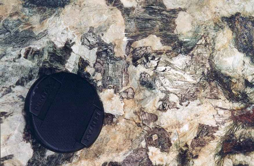 On observe en clair les feldspaths et plus foncés, (couleur vert ou bronze) les pyroxènes. Le gabbro peut aussi comporter de la biotite et un peu d’olivine.